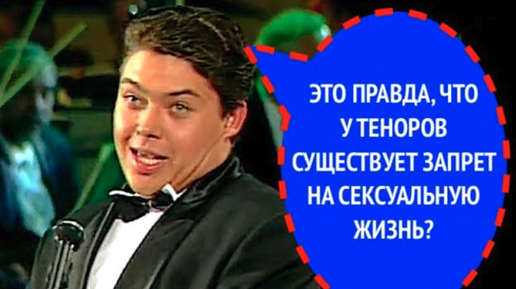 "Я слышала, что некоторые тенора заключают контракты, в котором один из основных условий является запрет на сексуальную жизнь, и скажите, вам приходилось с этим сталкиваться?" "Спасибо за вопрос. Я не могу ответить как абсолютно откровенно, дело в том, что действительно накладывается такое вето, и особенно тенорам приходится часто страдать от этого, также как известно, тенора — это герои-любовники." Зритель задаёт провокационный вопрос о запрете на сексуальную жизнь в контрактах теноров, ожидая личного опыта...