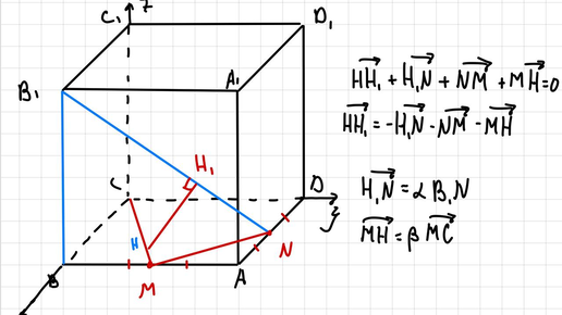 Всем привет Сегодня мы поговорим про очень эффективный и простой, но непопулярный метод решения стереометрических задач, а именно векторный метод Его плюс заключается в том, что для отыскания расстояния между линиями или длинны отрезка, нам не требуется обосновывать расположение прямых, их принадлежность к плоскостям, доказывать перпендикулярность и т.д. Нам лишь достаточно задать систему векторов через их координаты и составить систему уравнений Для примера возьмем задачу из последнего варианта,...