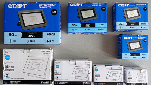 Я протестировал восемь недорогих прожекторов двух брендов – Старт и Gauss Elementary, продающихся в магазинах Леруа Мерлен.