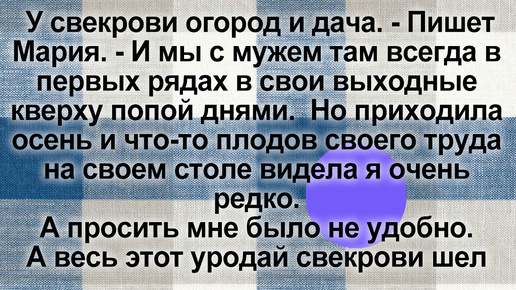 8 историй, как от огорода сбежать хочется! Да родителей жалко! А они на жалость давят и наглеть начинают так, что разные отнекивания придумываешь, чтобы не видеть не их, не их огород! История 1 У свекрови огород и дача. - Пишет Мария. - И мы с ним всегда в первых рядах в свои выходные, приезжали сажать, полоть, убирать этот урожай. Мы же молодые! Но приходила осень и что-то плодов своего труда на своем столе видела я очень редко. Спросить мне было не удобно, а муж при вопросе: -Где?, -вез ту же картошку, морковь и лук с базара...