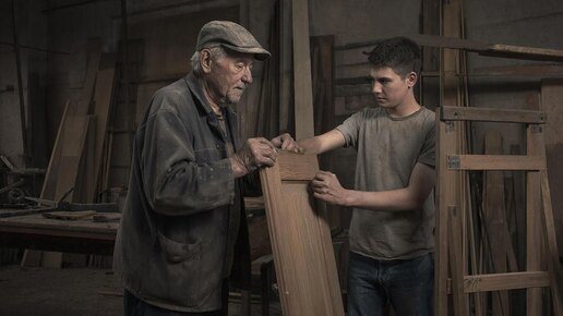 — Геннадий Сергеевич, вот, как и обещала, привела вам подмастерье, — донеслось до мастера откуда-то издалека. Он был так сосредоточен, погружая последнюю щепочку в полотно двери, что даже землетрясение не смогло бы его отвлечь. — Генна-а-дий Сергееви-и-ич, — позвала чуть настойчивее девушка. — Если промахнусь, буду вас обоих по всему цеху киянками гонять, — стараясь не дышать, тихо сказал мастер, опуская кусочек в прореху. Молодой человек с ужасом посмотрел на кадровика, и та в ответ сдержанно улыбнулась и кивнула — мол, надо подождать...