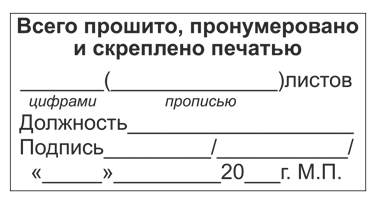 Для брошюровки документов на нить, то есть для прошивки документов, существует несколько способов. Первый способ – два отверстия В прошиваемом документе сделаем дыроколом два отверстия. Протянем через них нити, сделав три кольцевых витка. На оборотной стороне документа нити свяжем в узел. Далее на узел необходимо приклеить листок с «Прошито и пронумеровано». Затем обрезаем излишки нити, ставим подписи и заверяем печатью. Второй способ – три отверстия В прошиваемом документе делаем три отверстия на лицевой стороне документа...