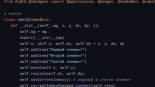 PyQT5. Элементы управления в окне (QComboBox). Обработка событий (сигналы)
