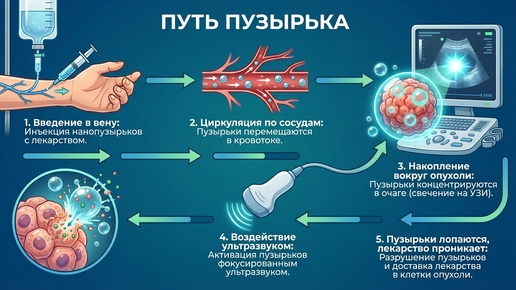 Что для вас лекарство? Таблетка? Укол? А представьте крошечный, невидимый глазу пузырек, размером в 10 раз меньше эритроцита. Он путешествует по вашему кровотоку, как подводная лодка. На его оболочку нанесено лекарство, а внутри — просто воздух. Когда он достигает цели — опухоли или больного сосуда — врач дает сигнал ультразвуком. Пузырек лопается, и лекарство взрывообразно высвобождается точно там, где нужно. Фантастика? Нет, это тераностика — одно из самых многообещающих направлений современной медицины, и российские ученые из Сколтеха уже создают такие пузырьки...