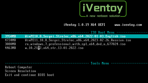 Когда в сети много клиентских машин, неудобно бегать к каждой с флешкой, плюс иногда надо запустить какой-то специфический образ. Самый эффективный способ - поднять PXE сервер. До недавних пор всё это было немного заморочено. Сегодня мне хватило часа чтобы запустить свой сервер в локальной сети на базе iVentoy. Опишу настройку под Win, есть версия для Linux - всё аналогично. Скачиваем с сайта архив, распаковываем, установка не требуется. В папку iso закидываем необходимые образы дисков. Запускаем iVentoy_64...