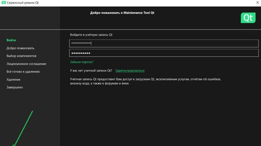https://qt-mirror.dannhauer.de/official_releases/online_installers/ 2. Вводим регистрационные данные 3. В правом нижнем углу заходим в настройки 4...