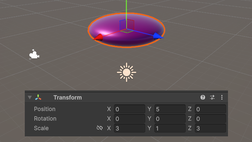 Этот параметр определяет, где находится объект в мировом пространстве. Пример: (0, 1, -5) – объект на уровне земли (Y=1), в 5 метрах от камеры...