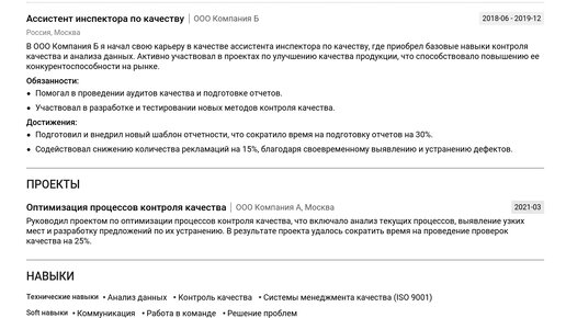 Изучите наш **пример резюме инспектора по качеству**, чтобы понять, как создать по-настоящему эффективный документ. Получите четкое представление о структуре и содержании, чтобы ваше резюме привлекло внимание работодателя и привело к собеседованию. В этой статье представлены **готовые примеры** резюме для инспекторов по качеству разного уровня: как для начинающих специалистов, так и для опытных профессионалов. Мы дадим вам **пошаговые инструкции**, охватывающие все ключевые разделы документа. Вы...
