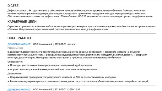 Пример резюме дефектоскописта 2025 - как составить