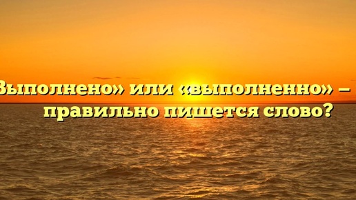? Если сомневаетесь, как пишется слово – «выполнено» или «выполненно», необходимо вспомнить правописание суффиксов кратких причастий. Давайте вспомним правило и выберем вариант написания, который отвечает орфографическим нормам. Как пишется правильно: «выполнено» или «выполненно»? В соответствии с правилом, пишется с одной «н» – выполнено. Какое правило применяется? Словоформа «выполнено» представляет собой краткое страдательное причастие прошедшего времени...