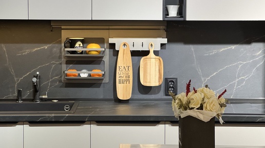 Моя любимая кухня находится совсем не у меня дома. В нашем салоне мне нравятся все кухни (ну, почти). Причем и у моего мужа есть любимица, у клиентов, и у меня. И всё это разные кухни. Расскажу сегодня про свою. Покажу, что в ней интересного, красивого и полезного, а что можно было бы и улучшить. И ещё по секрету сообщу, почему я этого делать не буду. Он совсем незаметный, как и положено встраиваемой технике. Фасад холодильника — из итальянского пластика Cleaf, немаркий, хоть и темного цвета, приятный на ощупь...