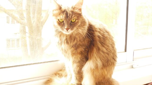 Всем привет с вами Басик! Сегодня я расскажу как я провёл 9 мая. Нас пригласили знакомые в гости, мы недолго думая мы согласились. На пороге нас встречала кошка Буся! Потом мы вместе пообедали и пошли беседовать. Буся пошла на балкон и я за ней. Запрыгнула на окно и стала глядеть на солнышко...