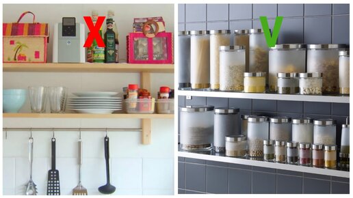 У меня никак не получалось красиво расставить предметы на полках. Помогла знакомая дизайнер интерьеров. Оказывается, есть простые правила расстановки предметов на полках. Делюсь! Собственно, никакого секрета и нет. Просто нужно расставлять предметы в соответствии с правилами композиции. Но не будем углубляться в теорию, на практике ее советы звучали так: ✅ На кухонных полках не нужно ставить коробки Ставьте посуду, стеклянные или керамические банки с крупами, но не разноцветные коробки, жестяные банки, "разнокалиберную" посуду: разноцветье создает хаос...