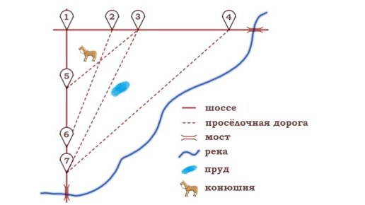 Здравствуйте, уважаемые читатели и учащиеся. Рассмотрим решение практико - ориентированных заданий по теме план местности. Задачи, которые были на пересдаче экзамена по математике в июле 2023 года и не вошли в решение этой статьи. Ниже приводится текст задания: Задание №1 Для ответа на это задание, необходимо внимательно читать текст задачи. Антоновка находится под цифрой 1. 1) Из Антоновки в Богданово (цифра 7) можно проехать по просёлочной дороге мимо реки (путь 1-7). 2) Есть другой путь – по шоссе...