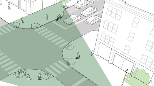 На пересечениях, как и на всех элементах улично-дорожной сети, должно быть обеспечено расстояние видимости, достаточное для безопасного движения транспортных средств, велосипедистов и пешеходов. Видимость на пересечении определяет расстояние, которое необходимо водителю, чтобы воспринимать и реагировать на присутствие конфликтующих участников дорожного движения. При определении расстояния видимости исходят из двух основных требований [1, 9]: – пересечение должно быть видно водителю приближающегося...