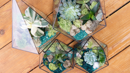 Стеклянный контейнер действует как мини-теплица, создавая комнатным растениям максимально комфортную среду. Флорариумы набирают популярность, поскольку дают возможность с меньшими усилиями контролировать влажность и температуру для комнатных растений. В закрытом флорариуме нет воздушного потока, а влажная среда действует как мини-экосистема, почти не требующая дополнительной влаги после создания. В открытые флорариумы попадает свежий воздух, снижающий влажность, поэтому растения в них надо поливать чаще...