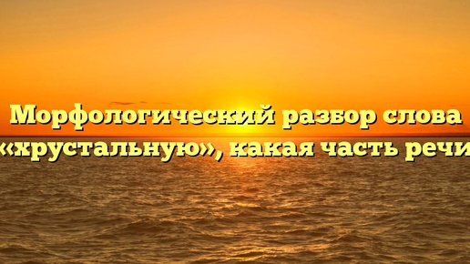Морфологический разбор слова «хрустальную», какая часть речи Хрустальную – это прилагательное в женском роде, падеже и числе. Чтобы понять, какая часть речи является слово «хрустальную», нужно произвести его морфологический анализ. Морфологический анализ – это выявление грамматических признаков слова. Первым шагом нужно выделить основу слова, она же корень. Основа слова «хрустальную» — «хрустал». Затем нужно выделить суффикс и окончание. Суффикс – это часть слова, которая находится после корня...