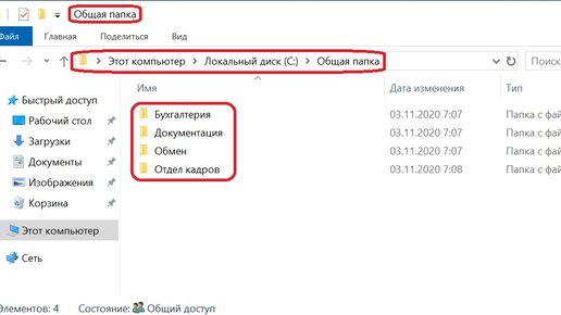 Разграничение прав доступа для пользователей в Общей папке файлового сервера в одноранговой сети.
