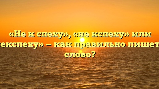 «Не к спеху», «не кспеху» или «некспеху» — как правильно пишется слово? В русском языке много устойчивых выражений, которые мы употребляем, не задумываясь: «не мудрствуя лукаво», «бабушка надвое сказала» и так далее. Еще одно любимое народом, используется чаще в устной речи: «не к спеху». А как правильно писать его: «не к спеху», «не кспеху» или «некспеху»? Как пишется правильно: «не к спеху», «не кспеху» или «некспеху»? Это фразеологизм следует писать только так: «не к спеху», то есть все слова по отдельности...