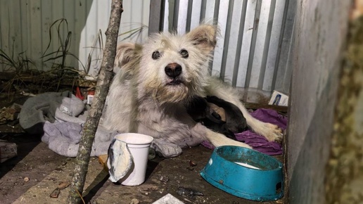На остановке появилась собака и она ощенилась на мусорке. Нашли семейство дети, которые и забили тревогу. Как щенки выживут на бетонном полу? А чем кормится сама мама? Местные жители постелили щенятам свитерок, чтобы было не столь холодно. Собачонке сделали навес и подставили под него палку. Собачонка оказалась забавной: белой, мохнатой и испуганной - как болонка., разве что покрупнее. Чистенькая, ушастая, явно бывшедомашняя. Бедняжка тряслась то ли от холода, то ли от страха и закрывала собою щенят, которых и так было не рассмотреть в темноте, если бы они сами себя не выдавали писком...