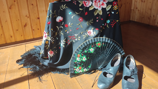 Всегда считала свои руки достаточно сильными - у меня же две лейки, и я ежедневно совершаю марш-броски по саду с поливом. Но один маленький нюанс быстро развенчал это большое заблуждение. Обзавелась я новыми "крыльями" для своего главного хобби в жизни - приобрела красивую испанскую шаль для танца фламенко. Та, что у меня была до того - самая элементарная, простенькая и лёгонькая. С однотонной скромной вышивкой, с хиленькими кистями. Испанская шааль называется мантон. С таким дешевеньким мантоном начинают заниматься и осваивать предмет, когда еще не совсем понятно, надо ли оно тебе вообще...