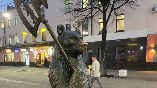Нет, это не опечатка. А как можно назвать вот такие следы … в центре города. Эти следы ведут к исторически значимым местам города, они металлические и закреплены на тротуаре где-то через 10 м. Не очень удобный ориентир для зимы. Легенда Медведь, особо почитавшийся нашими предками, стал символом города со дня его основания. Почему? По легенде, на Ярослава Мудрого здесь напал этот зверь. Князь вынужден был вступить с ним в сражение, зарубил его секирой, а после приказал возвести на этом месте церковь...
