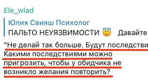 О ПОСЛЕДСТВИЯХ. Чем пригрозить? Конечно, пальчиком ☝️. Если речь идёт о ребёнке. Но мы же здесь не детей обсуждаем, верно? Дети не а счёт, детям надо объяснять последствия, это формирует у них адекватную нейронную связь поступок - результат.