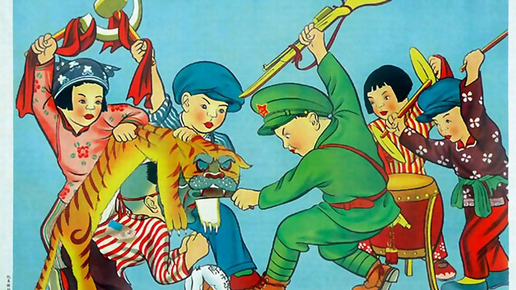 Китайский плакат 1951 года. Империалисты как бумажный тигр. Мао называл их «бумажными» и «соево-творожными тиграми».