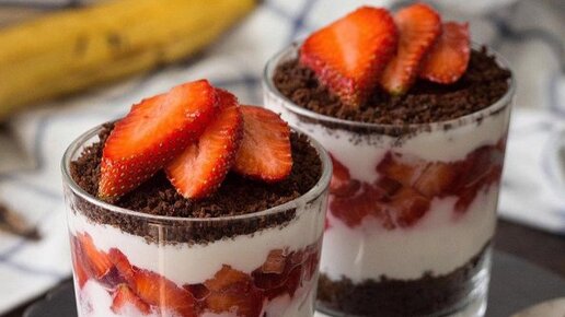 РЕЦЕПТ ДИЕТИЧЕСКОГО ТРАЙФЛА С БАНАНОМ И КЛУБНИКОЙ