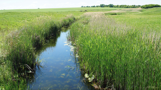 Как много таких на нашей земле, маленьких, не очень приметных, которые почти ручьи. "О, да это ручей!" - и сразу думается, что со слабым течением, грязненький, "толку-то в нем". А "речка" - это обязательно что-то достаточно большое, широкое, длинное... Поле, солнце, жара и мостик, через "ручей", о котором на подъезде к нему были мысли - только где его переехать - переправу на карте разыскать. Но за мостиком руки сами нажимают на тормоза, и велик остается чуть за ним, а глаза уже над маленькой речушкой пологого поля, завороженные листьями растений, что корнями держат ее дно...