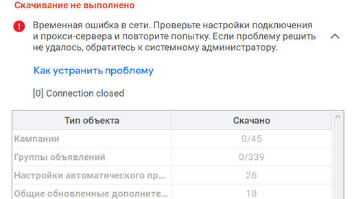 После прекращения работы с Гугл Эдс в феврале из-за всем известных событий, я, спустя 6 месяцев вернулся для управления проектом на одну из стран СНГ. При этом при поптыке выгрузить аккаунт клиента в Google Ads Editor я столкнулся с ошибкой. Google Ads EditorВременная ошибка сети. Проверьте настройки подключения и прокси-сервера и повторите попытку. Если проблему решить не удалось, обратитесь к системному администратору. А больше полезных материалов можно найти в моём блоге. В нём я регулярно делюсь бесплатными шаблонами и инструкциями, которые существенно облегчают жизнь маркетолога...