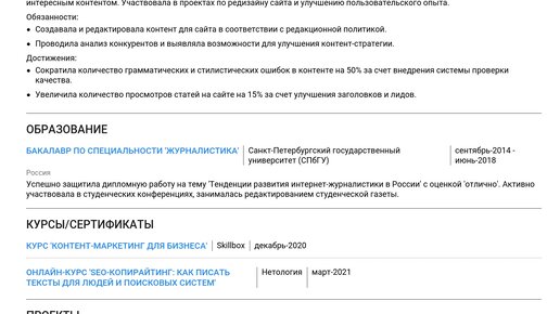 Резюме редактора сайта 2025: Как составить + примеры