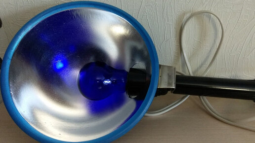 Правильное название этого прибора «Рефлектор Минина». Русский военный врач Минин изобрёл его в 1891 году, хотя настоящую популярность устройство получило в советское время. Прибор предназначен для лечения сухим теплом с помощью электрического света. Рефлектор состоит из зеркального металлического плафона, который соединён с рукояткой. Из рукоятки выходит сетевой шнур. Внутри плафона стеклянная лампа синего цвета. Для процедуры нужно держать рефлектор за рукоятку и направлять свет на больное место в течение 15—20 минут...