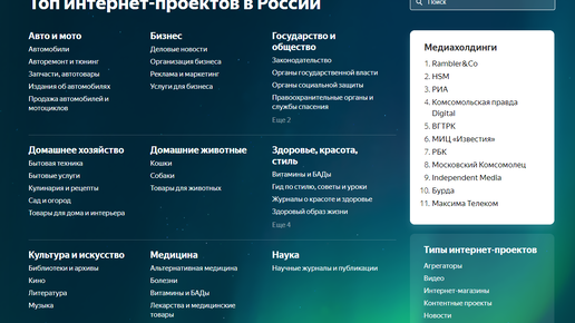 Сегодня Яндекс запустил Топ интернет-проектов — рейтинг самых популярных ресурсов у пользователей из России. Это первый открытый рейтинг, в котором представлены все наиболее посещаемые проекты и доступны подробные данные о российской аудитории. Мы верим, что Топ интернет-проектов поможет рынку интернет-рекламы стать прозрачнее и развиваться быстрее. Рассказываем, как с рейтингом могут работать площадки, рекламодатели и проекты, которые не зарабатывают на рекламе.