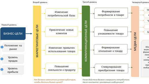 Осторожно! После прочтения этой статьи ваше представление об SMM-стратегии больше не будет прежним. Специалистам внедрение полученной информации даст +100 баллов к эффективности вашей работы. Предпринимателям – четкое понимание того, как выглядит работа профессионала. Ваши цели Прежде чем начать работу, рекомендую правильно определить цели пребывания на площадке. Ставим цели после понимания, в какой точке находимся в текущий момент. В основе стратегии лежат 4 уровня целей: бизнес-задачи, маркетинговые задачи, коммуникационные задачи и медиацели...
