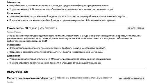 Пример резюме руководителя PR-отдела 2025 - Как составить