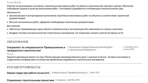 Заголовок резюме – первое, что видит работодатель. От него зависит, обратят ли внимание на вашу кандидатуру. Для мастера ремонтно-строительного участка важно составить заголовок, который четко отражает вашу квалификацию и опыт. Укажите вашу специализацию, чтобы работодатель сразу понял, в какой области вы имеете опыт. Это особенно важно, если вы специализируетесь на определенном типе работ или объектах. Не стоит ограничиваться общими фразами; конкретика – ваш лучший друг. Вот несколько вариантов...