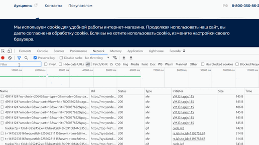 Вкладка Network. Фронт обменивается данными с бэком. Логично, что эти самые данные должны где-то отображаться. Напомню, что при первом переходе на страницу и по мере её обработки происходит отправка запросов на получение конкретных данных (картинок, стилей и т.п.). Так вот, все эти данные отображаются в хронологическом (по умолчанию) порядке именно здесь. Здесь же отображаются и запросы к конкретным ручкам, которые выполняет фронт, когда с ним взаимодействует пользователь. Вот на этом мы и остановимся подробнее! Исследовать мы будем какой-нибудь рандомный сайт...