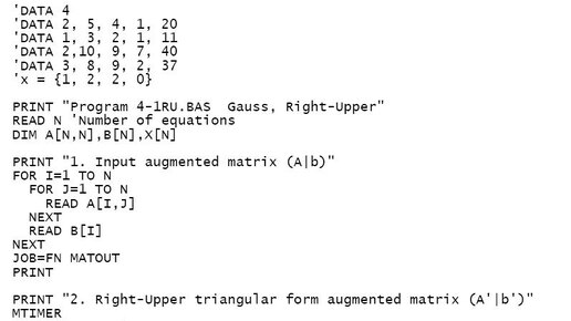 (Решение СЛАУ упрощённым методом Гаусса описано в статье [4].) В зависимости от того, к какому треугольному виду из четырёх приводится матрица СЛАУ, метод Гаусса имеет четыре разновидности: Right-Upper (традиционная), Left-Lower, Left-Upper и Right-Lower, причём правые (с вычислением корней "задом-наперёд") - не упрощённые, а левые (с вычислением корней в естественном прямом порядке) - упрощённые. В данной статье описываются только не упрощённые (правые) разновидности метода Гаусса: Right-Upper и Right-Lower...