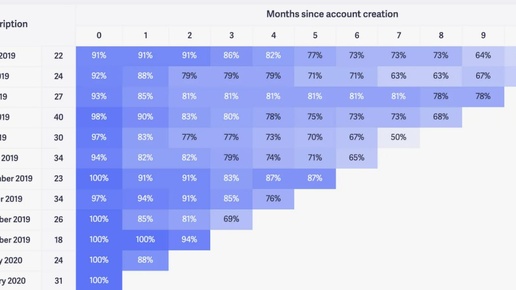 Retention Rate - метрика, которая показывает долю клиентов, которые продолжают пользоваться продуктов (покупать или совершать другое целевое действие) спустя какое-то время после их первого взаимодействия с продуктом. Эта метрика позволяет бизнесу оценить по-другому возвращаемость клиентов в компанию. Как и в RFM это важно смотреть, когда бизнес-модель предполагает, чтобы клиенты возвращались: делали повторные покупки, продляли подписку, покупали следующий абонемент и т.п. Когорты и когортный анализ...