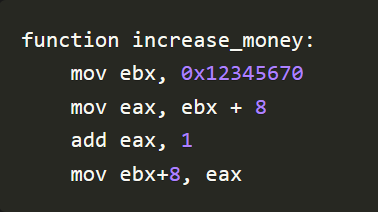 Любые данные, которые могут быть обновлены в игре, хранятся в переменных. Это включает в себя такие вещи, как счет игрока, позиция или деньги. Эти переменные объявляются в коде. Пример...