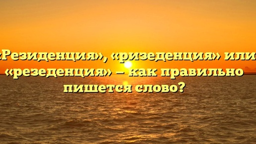 «Резиденция», «ризеденция» или «резеденция» — как правильно пишется слово
