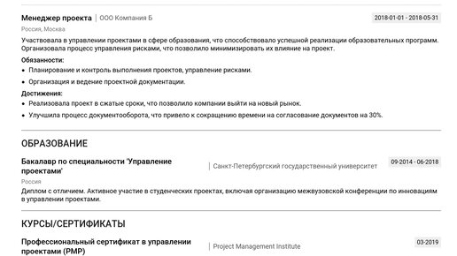Пример резюме куратора проекта 2025 - актуальный