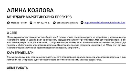 Как составить резюме менеджера маркетинговых проектов: примеры и шаблоны 2025