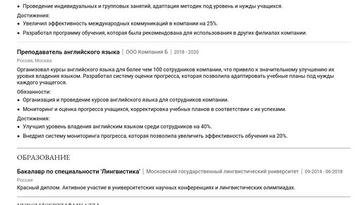 Пример резюме носителя английского языка 2025 - как составить