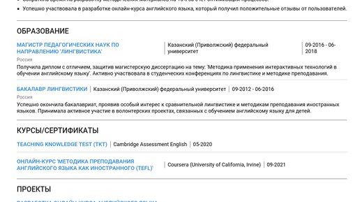 Пример резюме репетитора по английскому языку 2025 - Как составить