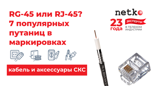 В кабельной сфере существует множество обозначений, названий и аббревиатур, причём чаще иноязычных. Часто их путают, в результате чего долго не могут найти нужное оборудование. Мы проанализировали запросы клиентов и выявили наиболее частые ошибки. Часто путают эти обозначения, так как оба начинаются с букв «R» и созвучны, но одно обозначение относится к типам коаксиальных кабелей, а другое — к разъёмам коннекторов для витой пары и телефонных кабелей. Неправильно: RG-45, рджи 45