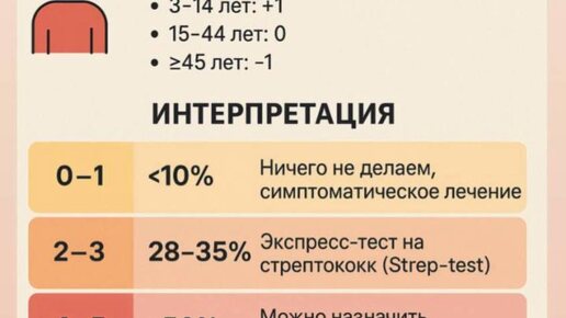 Боль в горле. Как понять, что нужен антибиотик без дополнительного обследования?  Здесь рассказала историю Петра с ангиной, как понять, что у вас ангина и как лечила.  Не у всех и не всегда есть возможность выполнить дополнительные обследования, поэтому используют шкалу Centor-MclSAAC. Даже обычный человек дома по этой шкале определит, нужен антибиотик или нет.   Шкала Centor–McIsaac - это тест, который врачи используют, чтобы оценить вероятность стрептококковой ангины (стрептококкового тонзиллита) и решить, нужен ли антибиотик и дополнительные тесты...