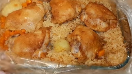 Самое простое приготовление курицы с гарниром. Без лишней обжарки и жира. Рис получается рассыпчатым, а курица сочной. Вкусно и полезно. Продукты: 1) Куриное бедро - 5-6 шт 2) Рис - 2 ст 3) Вода - 3 ст 4) Морковь - 2 шт 5) Лук - 1 шт 6) Чеснок - 5 зуб 7) Масло растительное - 3 ст л 8) Приправа для плова - 2 ст л 9) Паприка сдадкая - 1 ч л 10) Соль, перец - по вкусу Рецепт: Рис промойте несколько раз и залейте его холодной водой на 30 минут. Куриные бёдра солим, перчим, добавляем паприку и растительное масло...