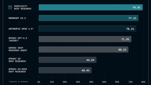 Это обновление объединяет лучшие из доступных моделей с фирменной поисковой системой Perplexity и будет работать на базе Opus 4,5. Perplexity Deep Research достигает передовых результатов по ведущим внешним ориентирам, превосходя другие инструменты глубоких исследований по точности и надёжности. НУ и для удобства ребята выкатили свой бенчмарк для агентов глубих исследований — DRACO (The Deep Research Accuracy, Completeness, and Objectivity). Он включает 100 заданий в 10...